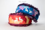 Please contact me to let me know you are interested in a custom order. After I will direct you to complete my Custom Order Inquiry form. Once you complete the form, we will chat and finalize the details of your order. We will discuss the general idea of what you are looking for (colors, design, etc). From there, I will give suggestions and include “draft” photos of examples to choose from with fabric/webbing combinations. We will go back and forth to decide on final collar design.If you are not entirely sure what you want yet, no problem. I loooove coming up with ideas and working together! Please do not hesitate to ask any questions!